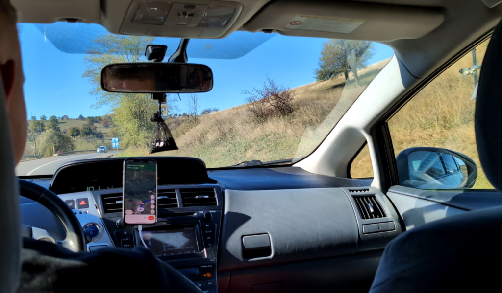 Nous avons trouvé un bon spot pour le stop, il y avait un énorme trafic qui avançait lentement, de la place pour s’arrêter… mais personne ne s’arrête. Il y a bien eu un monsieur qui voulait nous prendre mais il demandait de l’argent, comme souvent en Roumanie. Il y a même eu deux personnes qui faisaient du stop plus loin…