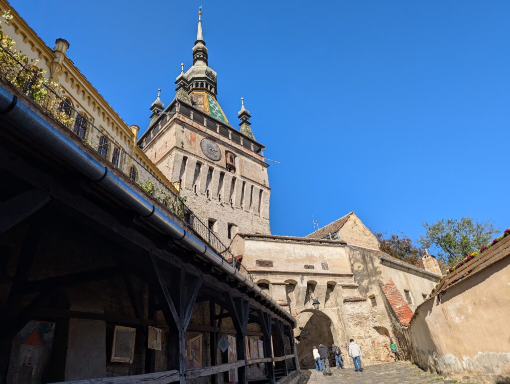 Arrivés à Sighişoara, nous pouvons contempler ces rues étroites entre de vieux murs perchés en hauteur. Que c’est beau ! C’est très touristique, mais c’est pas très grave. Une statue de Vlad Țepeș, le fameux comte de Dracula, nous indique qu’il est né dans cette ville. On y rencontre deux français : Estelle et Elvis qu’on reverra à Cluj quelques jours plus tard ; on rencontre aussi un américain d’origine indienne : Sameer. Il est venu me parler aléatoirement, il était très gentil et on a partagé un dîner roumain avec lui le soir. J’ai pu goûter les sarmale, un délice ! Sameer était très agréable, un chic type.
