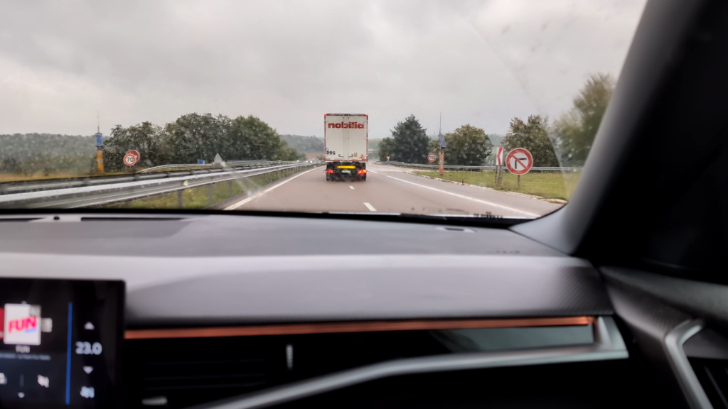 Je suis pris par mon premier chauffeur, Jérémy, un père de famille quarantenaire qui m’avance de 60 km. Il m’a laissé dans une aire de repos complètement morte mais je réussi rapidement à me faire transporter à la prochaine station essence grâce à Nicolas, un chauffeur privé avec une belle voiture que j’ai un peu dégueulassée. La providence fait bien les choses : à peine descendu, un garçon de mon âge fume une clope en me regardant, ce qui m’ouvre la porte pour lui demander s’il va en direction de Reims. Ce qu’il accepte ! Christian me dépose à 19 heures 30 à une station près de Reims.