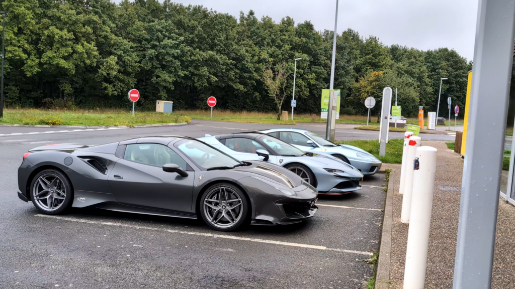 La journée commence bien : j’attends peut être 3 minutes avant d’être pris par Pierre Yves, un monsieur tout à fait agréable qui organise des séjours touristiques en France. Il me conduit avant Strasbourg,. Pendant le trajet nous avons écouté ensemble un podcast sur l’histoire de la région. La station essence dans laquelle me dépose avait de très belles voitures qui allait sans doute s’aventurer sur les autobahns allemandes, sans restriction de vitesse !