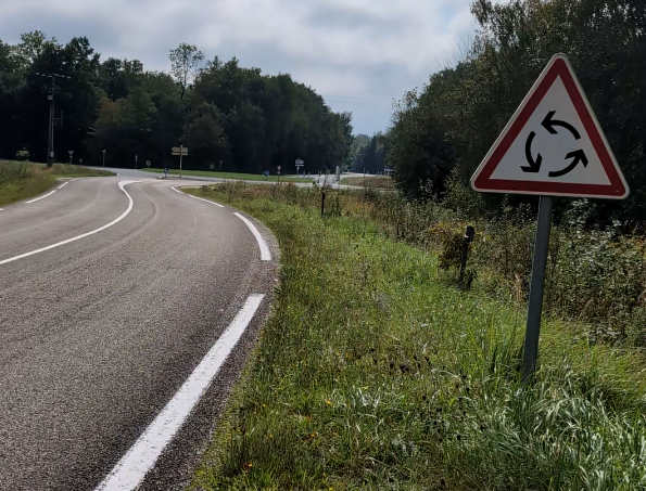 L’objectif était donc de se remettre dans l’autre sens, c’est à dire d’aller de l’autre côté de l’autoroute pour repartir en direction de la Suisse. Nous nous rendons compte que personne ne fait demi-tour et un passant nous conseille d’aller au prochain péage où nous pourrons plus facilement traverser. Baptiste nous amène donc au péage où nous nous heurtons à la sécurité routière peu de temps après avoir traversé. Ils étaient très compréhensifs mais nous ont demandé de quitter l’autoroute pour faire un détour à pied et regagner la bretelle. Nous marchons et retentons le stop pour nous avancer (il y a plus d’une heure de marche pour aller à la bretelle). Nous sommes pris par Isabelle après une attente non négligeable puis juste avant la bretelle, rencontre assez incroyable avec notre prochain conducteur Thierry.